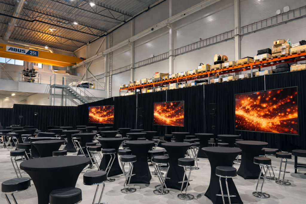 Vi kaller det «total makeover» Med lang erfaring har vi utallige ganger forvandlet ulike typer lokaler - verksteder, lagerlokaler, kantiner, og mer – til fantastiske eventarenaer. Med en imponerende historie innen skreddersydde arrangementer, garanterer vi en minneverdig opplevelse for de ansatte, kunder og leverandører. Vår prosjektledelse sikrer at hvert arrangement blir gjennomført med presisjon. Fra åpningen av nye bygg til jubileer, eksklusive kundearrangement og sosiale samlinger for de ansatte – vi skaper magien som varer.