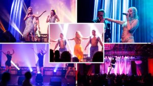 Etter dessert lander vi som regel i Las Vegas med et heidundrende shownummer fra scenen fra denne byen før kvelden gjerne rundes av med et partyband som spiller opp til fest og dans ut i den sene nattetime.
