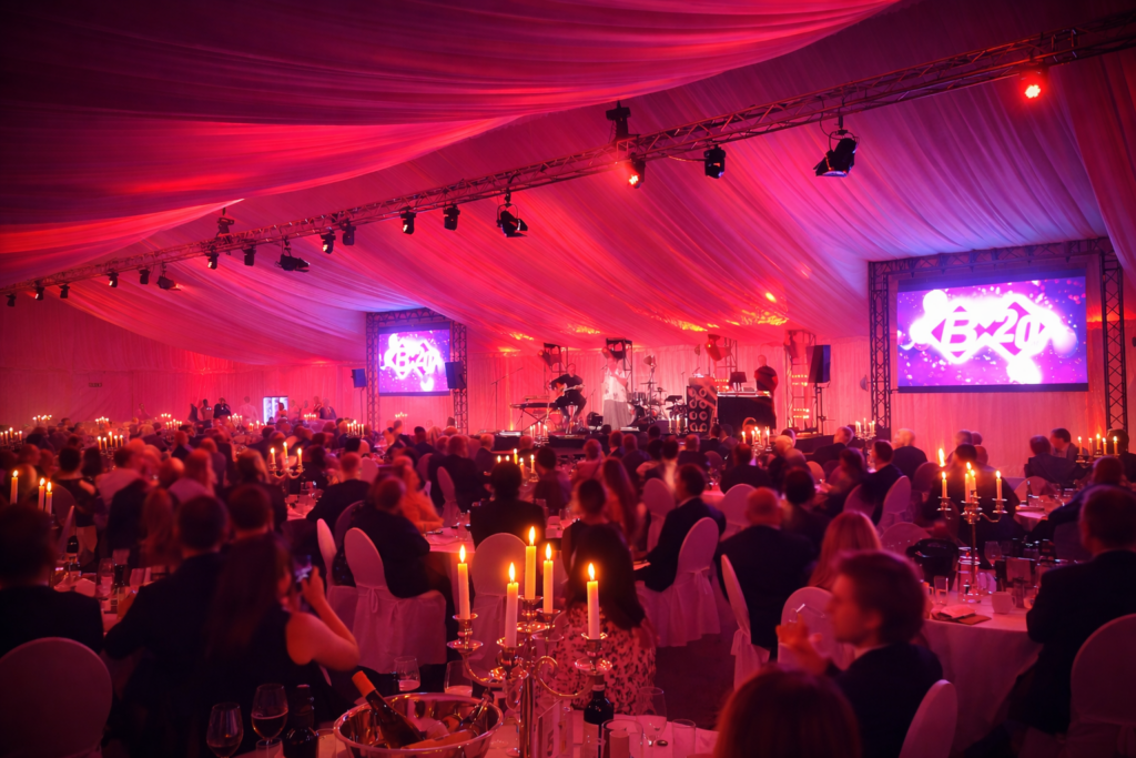 Bjelland har vokst til å bli en av de ledende entreprenørene i Rogaland innen bygg og anlegg. Da planleggingen av selskapets 20-års jubileum startet, tok oppdragsgiver kontakt med oss for bistand. Det ble tidlig besluttet at jubileet skulle markeres som en stilfull firmafest i form av et eksklusivt telt event utenfor firmaets kontorer. Kvelden skulle by på en gjennomført ramme med 3-retters selskaps meny, topp underholdning og en gjesteliste bestående av ansatte, kunder og leverandører.